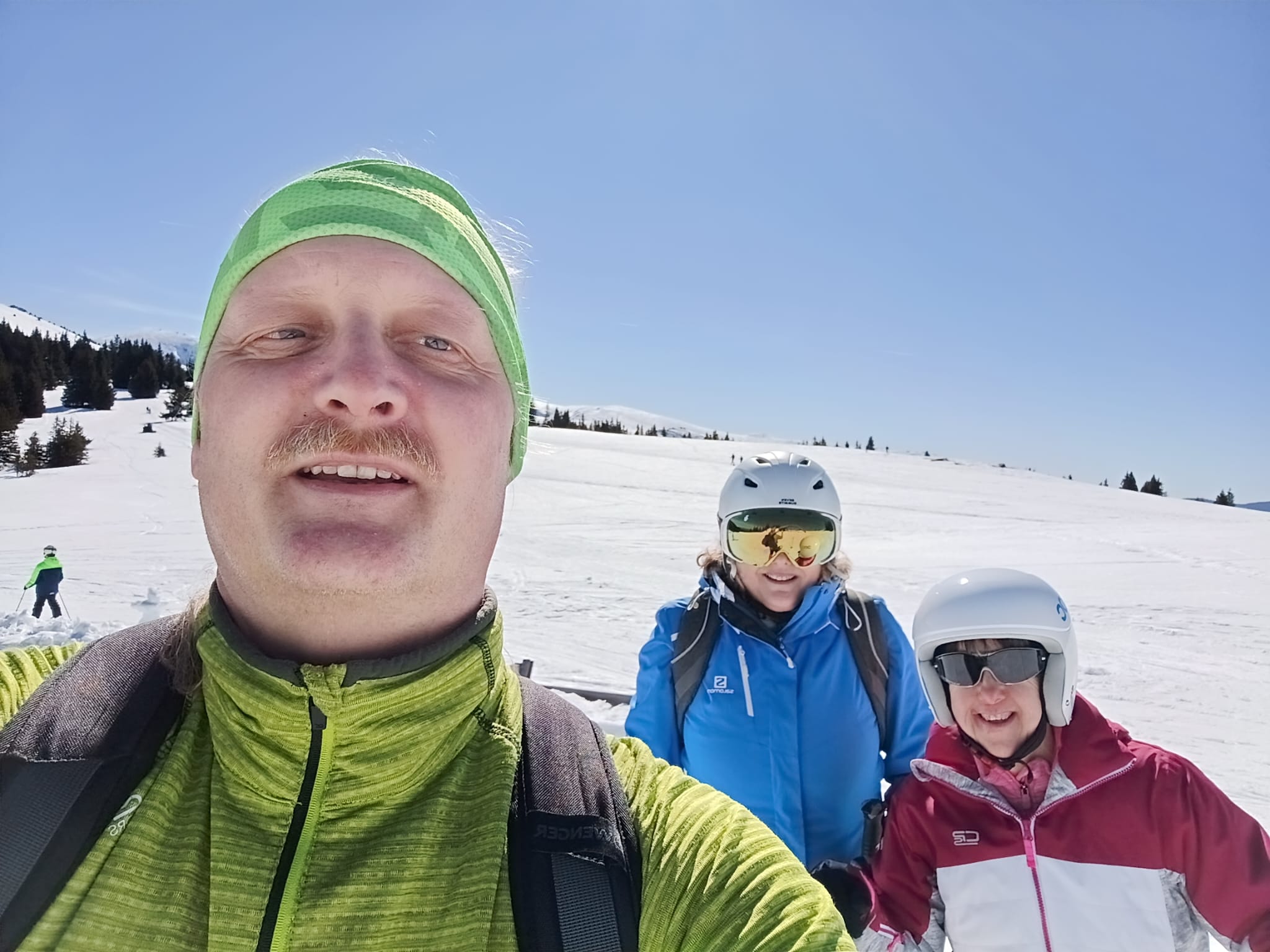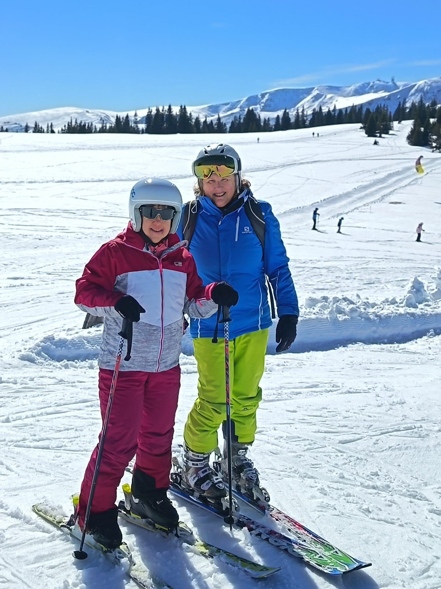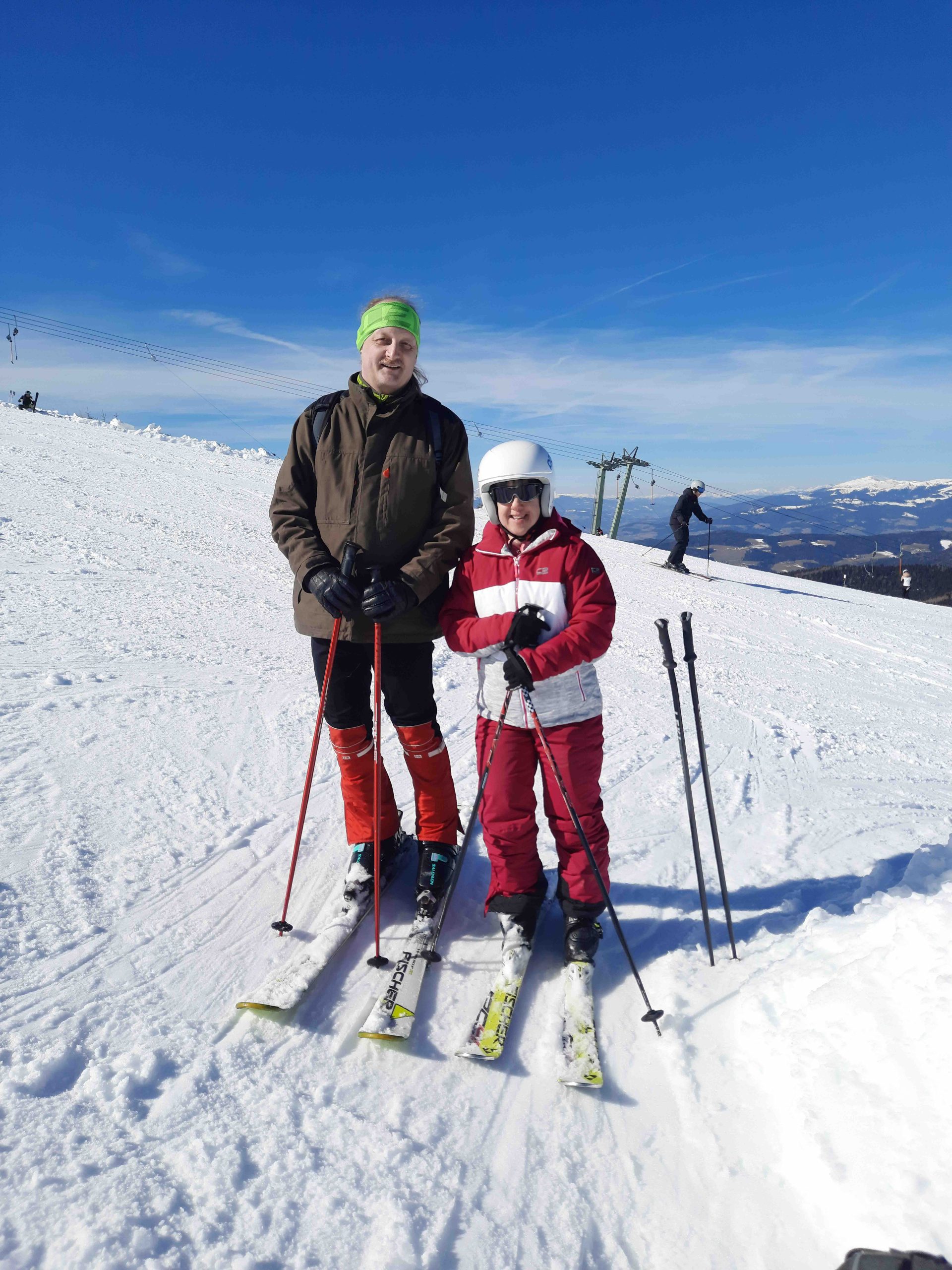 Gemeinsam mit Andrea und Thomas verbrachte Birgit einen schönen Skitag bei herrlichstem Wetter und griffigem Schnee auf der Weinebene. Es machte Spaß, gemeinsam die Pisten hinunter zu fahren und sich anschließend auf der Hütte die wohlverdiente Stärkung zu gönnen!